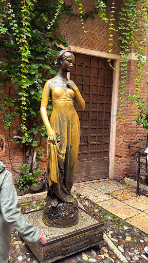 Read more3 stelle, ma non per la statua che è veramente bella e posizionata in maniera suggestiva nel cortile dove possiamo vedere il balcone famoso legato alla ancor più famosa storia Shakespeariana: 3 stelle perchè è triste vedere una moltitudine di persone farsi la foto toccando il seno della statua di Giulietta, sotto gli occhi dei sorveglianti/custodi di questa area turistica. Non ci vedo goliardia nel toccare una sedicenne, simbolo della storia d'amore per eccellenza, in questo periodo dove ci mostriamo tanto sensibili all'argomento della violenza sulle donne, contro le molestie, e a favore del femminismo, ma vedo solo una grande contraddizione a questi concetti e un cattivo gusto in generale. Ma tutti si sentono spiritosi nel fare questo tipo di foto, piuttosto che credono in qualche fortunata occasione che sicuramente si presenterà per aver palpato un seno di bronzo. Che tra l'altro non è nemmeno l'originale....ma tanto figurarsi...