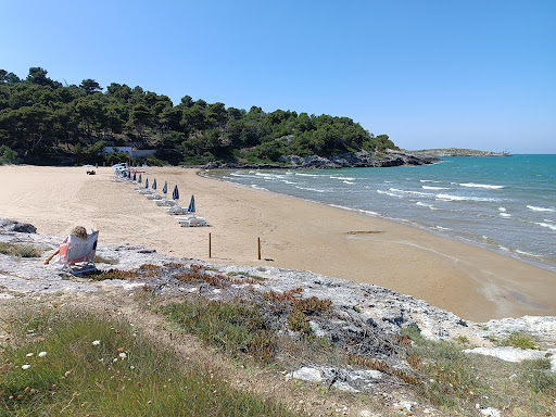 Una delle migliori spiagge di sabbia di Vieste, perfetta anche per i bambini data la bassa profondità del fondale. Quando il mare è calmo l'acqua è pulita, cristallina. È una baia riparata e quindi il mare è solitamente calmo. Mai affollata perché completamente privata. È uno dei pochi posti di Vieste ad essere stato risparmiato dalla cementificazione selvaggia e dal turismo di massa. Gli unici ombrelloni presenti sono del villaggio Il Capricorno, forse l'unico a metterne una sola fila o al massimo due in alta stagione. Niente barconi stracolmi di sfigati che approdano a tutte le ore inquinando il mare (mi chiedo come fate a stare stipati in 50 su una barca come pecore sotto il sole). I due costoni di roccia che delimitano la baia hanno dei sentieri percorribili a piedi da cui si accede alle altre calette (punta lunga e molinella). Purtroppo non c'è parcheggio. La spiaggia è raggiungibile a piedi tramite questi sentieri o affittando l'ombrellone al costo di 15 euro a persona. Per me li vale tutti, sembra di essere in un paradiso...