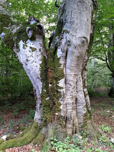 Il bosco è bellissimo, ad alto fusto con rado sottobosco, facile da percorrere con alcuni stupendi alberi secolari. Il sentiero si snoda per un tratto lungo il torrente Peschiera, dove dovrebbero vivere le lontre di cui naturalmente non siamo riusciti a vedere nemmeno un baffo. Nonostante fosse il periodo di ferragosto, durante il percorso non abbiamo incontrato quasi nessuno, se non nei primi 50 metri, accanto alla strada, invasi da folle di gitanti dediti al pic-nic. Purtroppo non sembra che la cultura del trekking qui abbia attecchito, né aiuta la politica con cui sono gestite queste zone: le segnalazioni lungo il sentiero sono carenti, né siamo riusciti a trovare in zona una cartina con la sentieristica, giusto per orientarci e capire le distanze. Manca per esempio il primo cartello, quello fondamentale 😁, tanto che all'inizio abbiamo preso il sentiero in senso opposto e ce ne siamo accorti solo dopo almeno due km, quando il sentiero spariva... Beh, niente di male, abbiamo seguito un bel ruscello anche camminando nell'acqua, però i tempi si sono dilatati e non siamo riusciti a giungere al recinto dei cervi, che era sul sentiero dalla parte opposta. In compenso, quasi alla fine, alle casette della forestale, abbiamo incontrato una guida locale superinformata, che ci ha dato molte dritte, ma ci ha confermato che la gestione a livello centrale del Parco è deficitaria. Pochi giorni più tardi si è verificata la tragedia nelle gole di Raganello, in un'altra zona del Pollino, certo non dovuta del tutto alla mancanza di informazione da parte di chi gestisce il Parco, ma forse...
