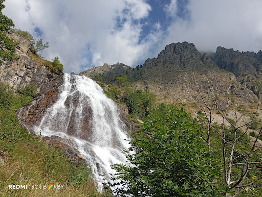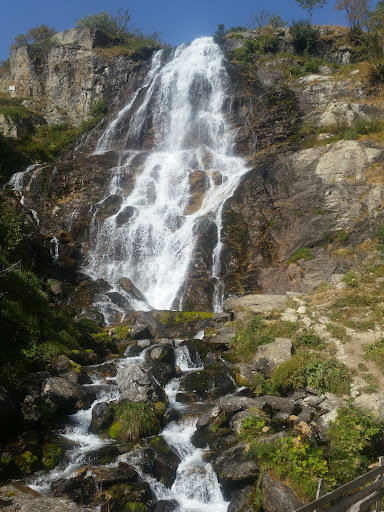 La cascata sullo sfondo del cielo turchese vale sicuramente il viaggio per Bagni di Vinadio. Anche alla fine.di questa estate 2017 particolarmente avara di piogge offre uno spettacolo suggestivo...si può arrivare con un percorso molto agevole che si snoda su una strada non asfaltata, chiusa al transito automobilistico, oppure attraverso un sentiero un po' più selvaggio, che sale sul versante opposto dei torrente a valle...