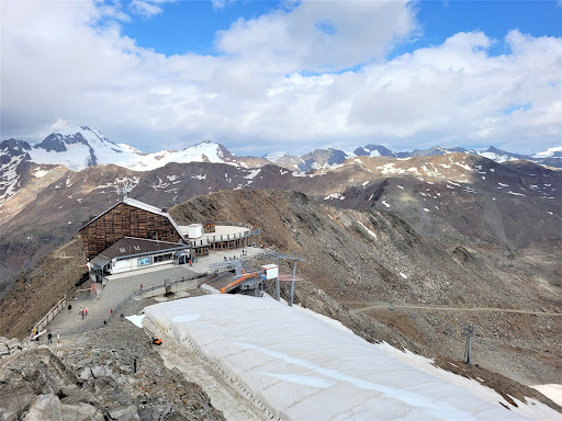 Read moreSiamo saliti sul ghiacciaio con la cabinovia ed abbiamo ammirato un panorama a 360° C sulle Dolomiti, spaziando fino all'Ortles-Cevedale nonostante il cielo nuvoloso ed il vento gelido che sferzava senza sosta; siamo arrivati sulla piattaforma a 3.251 mt per constatare che l'estensione del ghiacciaio si è palesemente ridotta e che cercano di conservarne una parte sotto i teloni bianchi: che tristezza vedere come l'inquinamento sta distruggendo il nostro pianeta e la colpa è solo degli esseri umani. Non abbiamo effettuato escursioni in zona causa maltempo ma abbiamo optato per un cappuccino al bar del Grawand Hotel prima di scendere a valle...