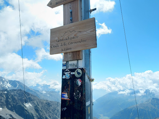 Read moreGrawand (o Croda delle Cornacchie..), si trova a 3251 metri di altezza, sopra Maso Corto, vicinissima al ghiacciaio Hochjoch ( Giogo Alto) e non lontana dal più famoso Similaun, luogo del ritrovamento di Otzi, la mummia dei ghiacci. Si raggiunge con ripido sentiero da Maso Corto ( il dislivello è di 1200 metri..) o, più comodamente, con un breve percorso ( prima pietroso, poi su di una scalinata in legno e ferro..) dalla vicina stazione d'arrivo in quota della funivia. Sulla cima è stata costruita una piattaforma circolare che permette la visione a 360' del panorama. Attorno a voi, vedrete più di 100 vette che superano i 3000 metri e diversi ghiacciai. Vale...