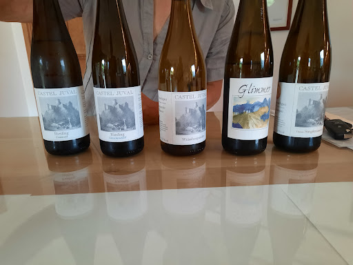 Die Auffahrt zum Weingut ist für Besucher frei, allerdings muss man auf der engen Bergstraße jederzeit mit Gegenverkehr rechnen. Auch der Shuttlebus zum Schloss Juval fährt diese Strecke. Wir hatten Glück, die Winzerin noch kurz vor der Mittagspause für eine kleine Weinprobe anzutreffen. Dabei interessierten uns besonders die drei Rieslinge des Weinguts. Der Riesling Weingarten Windbichel aus 2018 hat uns sofort begeistert. Wir haben uns gefreut, dass ein spontaner Besuch möglich war. Mit etwas Vorplanung und mehr Zeit kann man auch an einer Weinbergführung teilnehmen. Der Blick über das Tal ist wunderschön von hier, und der Hof lädt zum...