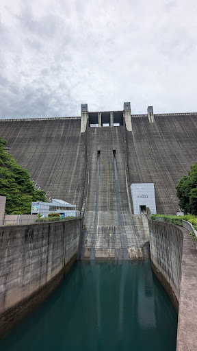ダムの上にも駐車場があります。 この駐車場はあまり大きくありません。しかも入口に警備のおじさんがたっていて、赤いポールがあったので侵入禁止かな~と思ってしまいました。おじさんに確認したらどうぞと、駐車位置を示したカードを渡されました。