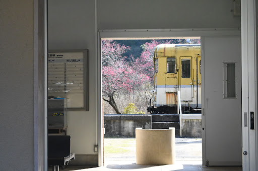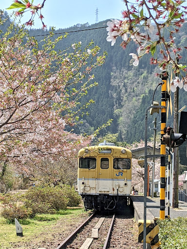 The old train on the old tracks surrounded by beautiful mountains, singing birds, sounds of a nearby stream decorated with sakura blossoming trees all around is worth the visit out.
