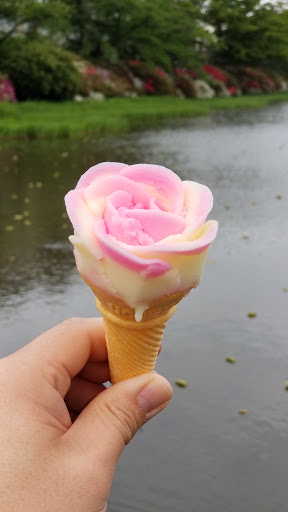 She ingeniously shapes it into a rose with a mix of vanilla and rose flavoured ice. For the 200 yen and a really nice smile it made our day.