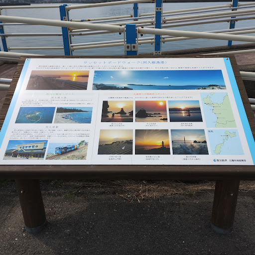 Read more防波堤を利用したボードウォークです。目の前に阿久根大島を見ることができます。 訪れたのは昼間でしたが、東シナ海に沈む夕陽が美しい場所です。 ボードウォークの先端にはハートのオブジェがあり、途中のあちこちにも...