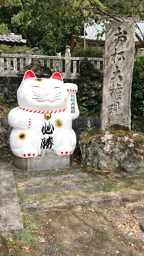Read more徳島県阿南市加茂町に鎮座する日本一社の神社です。 当日、秋雨の影響で雨降りの中訪れましたが、参拝者も多数いらっしゃり、人気の神社である事が伺えます。 賭け事、勝負事に御利益があるとの事で、受験シーズンには合格祈願に更に多くの参拝者が訪れそうです。境内の絵馬も格別多く奉納されています。 鳥居横には神社には珍しいとても大きな招き猫が据えられていました。お腹に「必勝」と描かれている事からインパクトも大きく印象深いです。 次に目を引いたのが境内の御手洗い(トイレ)で、木造で非常に新しく、神社の御手洗いとは思えないほど綺麗です。実際に立ち入って使用しましたが、非常に清潔で、神社の雰囲気を崩さない配慮がなされた純和風の造りで、最新の設備が整っています。 引き続き境内を巡って行きますと、猫の七福神や猫不動尊、猫の細道等々、一般的な神社とは異なった、とても和やかな雰囲気と猫の愛くるしさを感じさせられます。生憎の天候でしたが、とても朗らかな気持ちとなりました。猫の神様以外にも、荒神社や熊野権現もお祀りされています。 何より境内には驚く程沢山の猫神様が祀られていますので、全ての神様にお詣りするのは中々大変そうですが、その分大きな御利益を受けられそうです。 最後に社務所を訪れました。ここでも数多くの猫をモチーフとした御守(主に開運、厄除)や、おみくじ、招き猫の他、幅広い数々の御祈祷も受付されていました。これ程の数と種類の御守等を扱われている神社も大変珍しいと思います。御利益にこだわらなくとも猫好きの方にも人気を博しそうです。 社務所前には机と椅子が設けられ、その後早速引いたおみくじを椅子に腰掛けじっくり読んでいました。するとどこからともなく可愛いらしい子猫が一匹近づいてきました。しばらく膝の上や机上に上がって、じゃれたり甘えたりしていました。程なくすると足元にもう一匹、一回り大きな子猫がたたずんでいます。猫達とのこの穏やかなひとときを満喫していると知らぬ間に猫達はいなくなっていました。それと同時にさっきまでの雨がすっかり止んで、青空がのぞいています。たまたま天候が変わったのでしょうが、何だかとても不思議な気持ちとなりました。ぜひとも又訪...