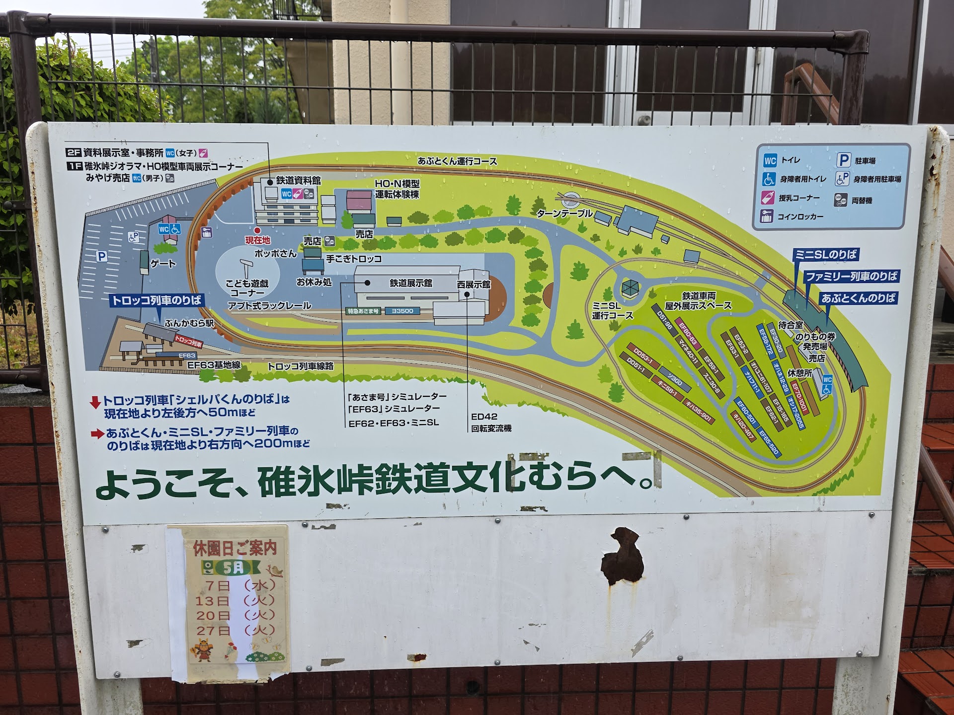 Read moreまた来ます! 【新型コロナ感染拡大防止対策】 入場時の検温、手指消毒、マスク着用。一般的でヒステリックではない。 【未就学児】 トイレにオムツ捨てあり。幼児補助便座の備え付けあり。園内課金電動遊具アンパンマン、トーマス多数。(うちは「予約制です」で誤魔化してました。)ベビーカー乗り入れオススメ。園内は広く、ベビーカーちょい置きできる場所も多い。 【車椅子、子供ストレッチャー】 スロープが多いので楽しみやすい。車椅子のままシェルパくんは乗れる。資料館にエレベーターはない。(従業員向けなどあるか不明) 鉄道資料館女子トイレは2階3階なので、膝がつらい高齢者などは園内の屋外トイレのほうが楽かも。屋外トイレは園入口すぐが一番近い。 【入園時に判断すること】 シェルパくんに乗るかどうか。時刻表を確認。 【トロッコ列車シェルパくん】 上りは進行方向右側(旧丸山変電所側)先頭がオススメ。2020年11月初旬は、並行する遊歩道「アプトの道」の電信柱、電線に野生の猿がいた。下りは2両目先頭が力強いシェルパくんを見られるのでオススメ。チケット購入済みでも油断せずに時間前に並ぶのがオススメ。 【ランチ】 晴れていれば持ち込み弁当を食べるエリアは多い。ビュウ広場がオススメ。越後屋食堂で焼きそば300円などの販売などあり。 【ミニSL】 乗れるSLとして大人気。 【ファミリー列車】 電気機関車。土日(時間限定12:10~13:10)は1000円で運転士含め6名まで同一料金で楽しめるのでオススメ。足がブレーキに届けば小1でも運転できた。未就学児も警笛を発車から停車まで楽しめる。 【鉄道資料館】 エレベーターなし(見つけられませんでした)。 1FのHOジオラマのレイアウト:課金すれば自分で動かせる。時間を合わせれば解説付きで動いてるのを見られる。夜景から夜明けの演出で始まる。レール総延長350メートル。新幹線、あさま、京浜東北線、成田エクスプレス。めがね橋。 「東京都三村豊喜氏コレクション」の展示は個人のコレクションは圧巻。 4F屋上:ベンチ2個。昼寝したら気持ち良さそう。 出入口:おぎのやの釜めしの釜の回収バスケットがある。 【屋外展示スペース】 車両などに「登らないでください」は書いてあっても「触らないでください」は少ない。触っていいんだよ!スイッチを!! 私はパンタグラフを初めてパタンパタン動かしました。 【他】 園入口前付近:線路が公道を挟ん...