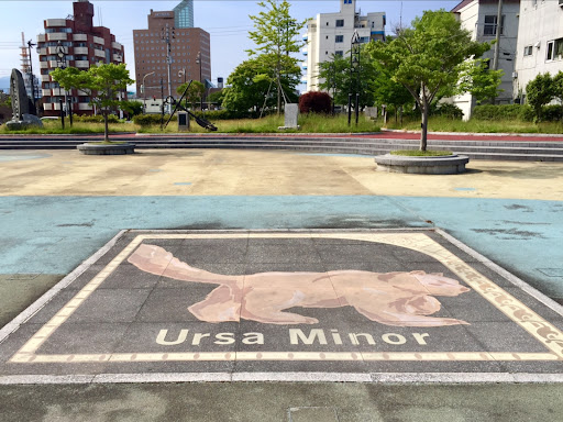 青い海公園を抜けて タグボートの「うとう丸」のところまで来ました。目の前は「聖徳公園」です。散歩でいつも通る愛着のある公園です。 「聖徳公園」の歴史は古く、1930年(昭和5年)に開園したそうですが、港湾の拡張などによって公園の場所が何度か移動していて、平成の初めに「青い海公園」が整備された頃に 現在のこの場所に落ち着いたそうです。 この公園の第一の特徴は、記念碑や石碑がとても多いことです。 ぐるっと1周すれば12本の記念碑や石碑と出会います。この公園の成り立ちが、明治天皇のご巡幸を記念し、明治天皇ゆかりの地(史蹟)として保存する目的から名称を「聖徳公園」として整備されたこともあり、その殆どが明治天皇に由来する記念碑や石碑となっています。 この記念碑や石碑の中での一番のメインは、開園時(最初に公園が整備された場所)に建てられた明治天皇の御巡幸御渡海を記念する「景仰聖徳(けいぎょうせいとく)の碑」です。高さが5mもある立派な記念碑です。 そして、その隣には、明治天皇が巡幸から無事に横浜港に帰港した7月20日に由来する「海の記念日発祥の地」碑があって、その向こうには巡幸からの帰港の際、明治天皇が乗船された明治丸の「主錨(しゅびょう)のモニュメント」などと記念碑、石碑が続いていきます。 次にこの公園の第二の特徴です。第二の特徴は、申し訳けありませんが、公園全体のイメージに一体感が無いことです。 公園の南側を囲むように記念碑や石碑が建っていて、その歩道を歩くと記念碑公園のようなイメージなのですが、公園の中心となる所々に色付けされた平坦な地面には、中央にケヤキの木が植えられた石造りの円形ベンチが9つあって、それはそれで良いのですが、その円形ベンチと円形ベンチの間のスペースに、なんとギリシャ神話でおなじみの4つの星座が大きく描かれているのです。 その星座とは、有名な「北斗七星」がある星座の「おおぐま座」と「こぐま座」。十字型にきれいに星が並んだ形の美しい「はくちょう座」。 そして北の空で輝く星座の「カシオペヤ座」の4つの星座です。 記念碑や石碑とギリシャ神話では、まったくイメージが合いません。 私の勝手な想像ですが、公園の設計の当初には記念碑や石碑を設置する計画は無く、 夜が寒くない季節には、海からの気持ちいい風に吹かれながら夜空に輝く星座でも眺めてほしいと「星座公園」のようなイメージで整備が始められたのですが、後になって記念碑や石碑が引っ越してきたのではないでしょうか。勝手に想像してすみません。 次に、この公園の第三の特徴というか「聖徳公園」の「聖徳」の読み方についてです。 「あおもり街てく案内板」や「青森市中心部案内図」が青森駅前の観光センターや 駅前交番の横などに設置されていますが、 その英語表記が「The Seitoku(せいとく)Park」と表記されているものと「The Shotoku(しょうとく)Park」表記されているものと2種類あるということです。ちなみに公園の海手にある案内板は「The...