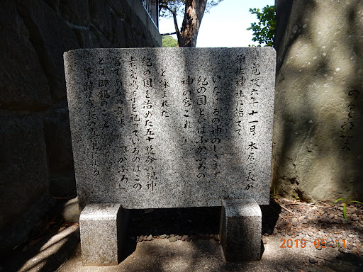 è³æã«ãããšã ãç¶é¢šåèšãã®åŒã瀟äŒã«ããã°ãåé 6幎ïŒ713幎ïŒ10æå亥æ¥ã«å€§ååœåéé¡è¥¿å·å³°ïŒå ŽæäžæïŒããäžéå±±ã®å±±é ã«å§è«ãããã®ãåµç¥ãšããããŸãåèšã§ã¯ãåœåã¯æµ·ã«é¢ããŠè¥¿åãã§ãã£ãããåŸæ¥ããè¹ãææã衚ããªããšè»¢èŠããããªã©ã®ç¥ç°ã瀺ãããããå æå€©çïŒåšäœïŒ707幎-715幎ïŒã®å åœã«ããæµ·ãèŠããªãããäžè ¹ã®çŸåšå°ã«ç§»ãååãã«æ¹ãããããšããã åœç€Ÿãå§è«ããããšããåé 6幎10æå亥æ¥ã¯ãäŒå€ªç¥æœç¥ç€ŸãçŸåšå°ïŒåæå±±åžäŒå€ªç¥æœïŒãžé·åº§ãããšäŒããå¹Žææ¥ãšäžèŽããããç¶é¢šåèšãã§ã¯ããã®ããšãã䞡瀟ã®çžæ ãææããŠããã
