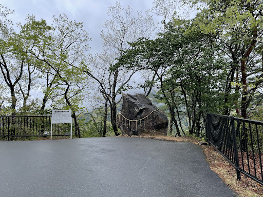 Read more駐車場から徒歩で車道を登りながら城址はまだかまだか?と思いました頃、注連縄のある岩が曲がり角に見えて来ます。「落ちそうで落ちない」受験生に人気があるというコチラの岩。言われは看板に譲るとして、何故ここに放置されたままだったのか?いざという時に攻め入る敵を目掛けて落とすには大きすぎて動かせないでしょうし、処置に困ってこのままにしたのか、割って石垣の部材にしようとしたのか?余計な想像を巡らせているうちに城址への入...