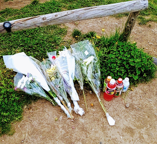 先日、花を持って手を合わせに行きました。 日曜日ということもあり、たくさんの小中学生が楽しそうに遊んでいる中、水をさすような事をするのもどうかとは思いましたし、被害者の方も公園で遊べなくなるようなことは望んでいないかとは思いますが、風化させないためには必要なことであり、被害者の方に良い報告ができるまでは続けていくべきだと感じます。
