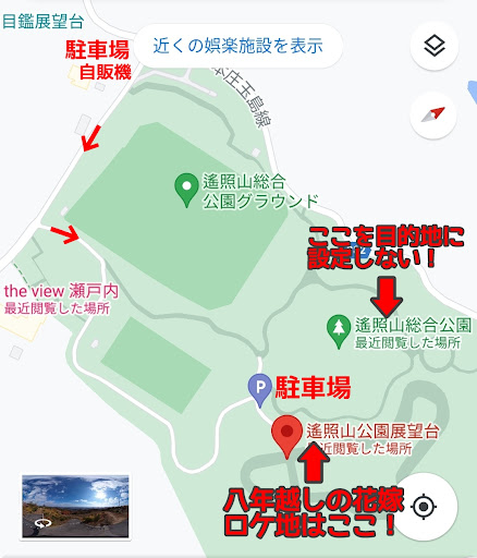 Read more景色も良く、近くに16時までですが温泉もあり車中泊スポットとしておすすめします。駐車場までの最後の坂で木の枝が出ているので自分のバスコンの場合コンコンと天井に接触しました。駐車場所によってはフロントガラス全面に水島コンビナートや瀬戸内海の島々が見えとても心地よいです。トイレもあります。但し平日でしたが23時ごろまで車や...