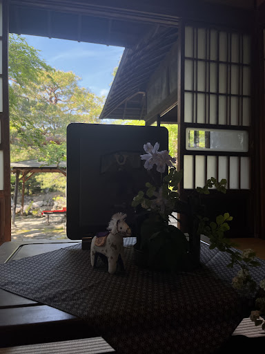 案内に従って行くと、受付に管理人さんがいました。居室の中にも入れるとのことでしたのでお邪魔しましたが、おそらく管理人さんが置いてくださったお花がそっと飾ってある畳の空間でした。和の心…久々の畳に嬉しくなってしまいました 入口近くでは近くの商業高校?工業高校?の方がデザインしたというハンカチや手ぬぐい、トートバッグの販売が行われていました。落ち葉から染めたというものあるとの事。売上は管理に使うとの事でしたので、素敵な空間を体感させていただいたお礼も兼ねてハンカチを1枚購入しました。素敵な青染めでした お庭は新緑色に染っていて、とても明るい空間でした。こんな素敵なお庭が街中にあるなんて、足利...