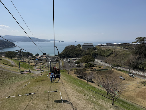 ◆ローラーリージュ 麓で支払い→ヘルメット選び→ロープウェイで上へ→スタート地点へ 海に背を向けて登る形だが、晴れ渡った日は登り終えたあと上から海を望む景色がとても綺麗。 一定以下の身長は単独乗り不可注意。 一定身長以下との2人乗り、及び初心者はいちばん簡単なコースのみ可。(3度ほど経験すると初心者でない証明が貰えて上級コースも遊べる模様。) 2回以上楽しむ場合は乗り放題?にするなどお財布対策を講じるが◎