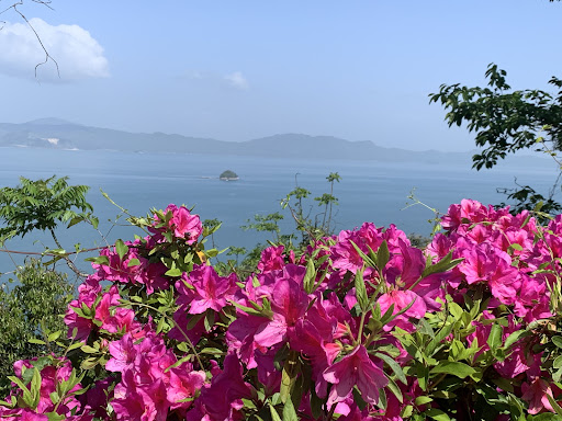 桜の季節は終わり、ツツジが満開でとても綺麗でした。点々と駐車スペースがあり、ツツジの香りを楽しみながら海を眺める事が出来ます。