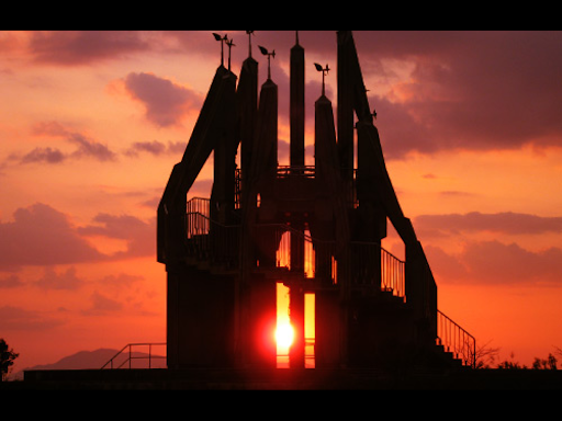 駐車場の入口に表示なし。登ってくる側だと、左カーブで、シンボルタワーは運転者の視線にはいらず、通りすぎる。バックミラーと、勘で、場所に気づいたが、ありえない。 タワーも、景色はいいが、謎の水溜まりがあるだけで、野ざらしという感じ。管理はあまり行き届いていない。 観光地“迷物”の意味不明のコインと、恋人たちの錠前があったが、当地とは余りに無関係で、ものまね感がはんぱない。 景行天皇の熊襲征...