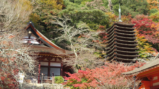 ・第1駐車場の駐車料金が同年4月訪問時は無料でしたが、同年11月1日から有料の定額500円に変わっていました。受付の方に秋のシーズンだけ有料ですか?と念のためお聞きしたところシーズンにかかわらず有料になると思われますとのことでした。因みに第5駐車場は500円が1000円に変わっていました。 ・藤原鎌足お墓の裏側は展望スポットになっています。同年4月訪問時は周辺の樹木で景色が隠されていましたが、同年11月2日訪問時は樹木が伐採されていて展望が開けている状況に様変わり。写真を載せておりますが当時は霧く大和平野を覆うように雲海が広がり遠くに生駒山系と二上山がみえ、中景は耳成山、藤原宮跡のみどりなど大和平野の美しい景色が観えました。余談ですが発掘品から藤原鎌足のお墓と推定されています大阪府高槻市の阿武山古墳から観える摂津、河内の風景が展開しこちらも絶景です。談山神社背後の御破裂山山頂の藤原鎌足墓の遺骨は摂津国安威から改葬されたとの言い伝えがあるとの事です。古代、中世といった日本の政治をリードした藤原氏の始祖に相応しい場所でお眠りしているんだなと想像が巡ります。 ・4月訪問時は拝殿と神廟拝所の2箇所に入れましたが、11月2日訪問時はこれら2箇所に加え、芸能の神様をお祀りしております権殿も入るいることができました。この時は写生作品の展示会場になっておりましたので特別に開放されていたのかもしれません。