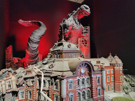 They start you off with a really cool, short film. Afterward, they direct you to the zip line where you choose to go either in his mouth or outside of him. Once you get off the zip line, you get to do a "cell shooting" game, which doesn't work all too well, but at least worth one try. After completing the zip line and cell shooting game, you get plenty of time to check out the Godzilla museum. It's more of a large room, but it's filled with incredible statues of Godzillas from different eras and concept arts and figures and is a fan's heaven. To complete the experience, you can do an optional photo shoot/video shoot with a Godzilla figure that will cost a little extra. The photo was ¥3,000 alone, but it can be enough for any fan.