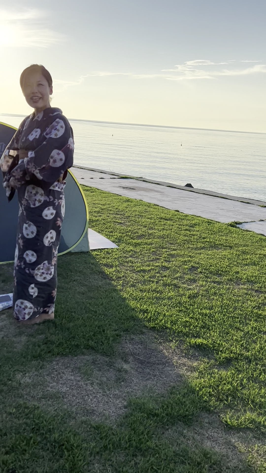 砂浜の幅は狭い目で、すぐに舗装された道に上がることができます。 砂まみれになるのが苦手な方にも優しい感じです。