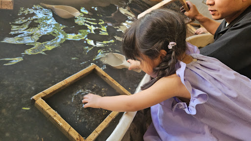 石を探すためのザル?が壊れているらしく10人近く参加していたのにほとんどの子供がスコップのみで探していたので...