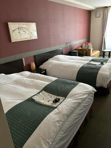 When we arrived we were surprised by how large the room was compared to other hotels we'd stayed at in Japan 🗾. The room and beds 🛏️ were also comfortable and we had a nice view from the window (a partial seaview and we could also see the yacht club and the mountains).