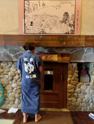 Read moreTrès bonne expérience de bain de vapeur dans le foin. C'est différent et c'est à essayer. Porter sa serviette, ou la louer. Casiers 100 yens. On prend les tickets à la machine en entrant (920 yens avec le kimono nécessaire). Puis dans les vestiaires on se lave soigneusement, devant, derrière. On enfile le yuckata kimono. On entre à quatre pattes dans un four (de boulanger). Le sol brûlant est couvert de foin humide. La porte est fermée vite que la vapeur ne s'échappe pas. On se couche dans le foin. On pose sa serviette sur un Caillou rond , ça fait un oreiller. Et on sue, on sue ! Au bout de 8 minutes une dame nous dit que c'est fini, on sort on s'enlève les feuilles accrochées au corps. On va se laver à la douche. On va se plonger d'un coup dans une petite piscine d'eau brûlante. On résiste. On sort et on va se rafraîchir à la douche ou dehors. Et on recommence dans le bassin.