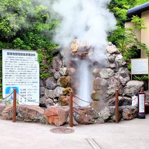 Tatsumaki Jigoku is perhaps the smallest of the Seven Hells of Beppu, however it stands out with it's geyser which regularly erupts every 30-40 minutes. There are benches and stone steps set out for people to sit and watch the eruption. There is also a sign next to the geyser explaining when it erupts and more information about it. Tatsumaki Jigoku also has a gift shop, and outside the premises is a toilet block.