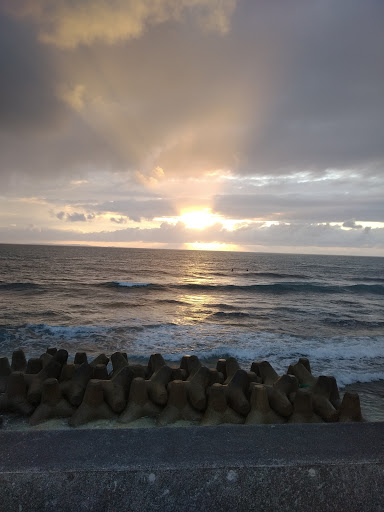 I'm not sure why this is referred to as "Miyagi Coast" this is the Sunabee Sea Wall. The walkway is approximately 12-15 foot wide, there are multiple concrete, open wall, roofed structures all along giving you a place to get out of the sun or rain. Excellent place to walk or job with a beautiful view of the ocean. Lots of small businesses all along. We went scuba diving the other day with Aloha Diving (highly recommend) and met at on of the covered stations. We've eaten at Bella Napolis a few times (also highly recommend) which is just one of the Excellent restaurants found here. If the weather is nice, forget about finding a parking spot on the wall. Low tide seems to be less crowded. Poor sea conditions (for snorkeling or suba) will be less corded as well....