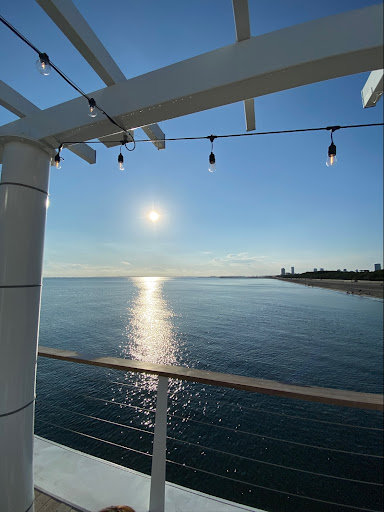 Read moreVery nice deck to enjoy the sea, sea breeze and sunset. It has chairs to sit and relax, while enjoying the view. Also, some tables to stand around. The hanging light bulbs add to the beauty...