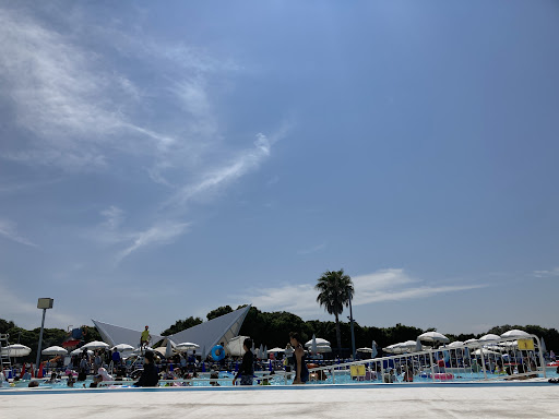 If you want to experience what a day in a japanese swimming pool is, this is the best place. It's huge, with many amenities, paid seats, wave pool, access to the beach, lazy river, kids area, normal pools, extra slides for a paid upgrade. If this is your first time in a japanese pool be aware of: you'll have to take a 10 minute break when everyone does. if you want to buy some food do it before the break as queues will be huge talking about queues, be ready to queue to buy a ticket, then to enter, then to get to the locker room, then to sort out your paid seat (highly recommend as there is no shade and it gets too hot), then for the slides, then for the food... lockers need ¥400 in ¥100 coins but machines are available if you don't have the coins. ¥300 is the fee and ¥100 is returned back at the end. food is quite expensive but they take cards (VISA) included. You're not allowed to bring food from outside Japanese people use protective clothes for a reason. You'll get sunburn if you don't protect your skin. The wet clothes also helps to cope the heat There are so many rules to follow, make sure you do it(no glasses, no watch, no jewelry, in this case caps are not required surprisingly) paid seats closed at 5pm but pool open until late so you have to move and wait the 45m break if you want to stay more. there is free drinking water available but it gets too hot so bring your own flask or pay for...