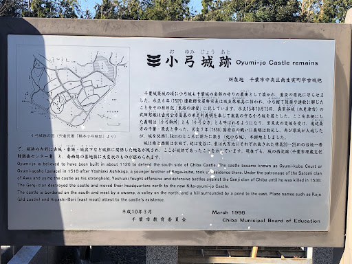 Read more戦国時代、 小弓 (生実) 地域には南北に二つの小弓城が存在しました。 これまで、この南小弓城の方が、 北の小弓 (生実) 城 (中央区生実町) よりも古くから存在し、 小弓公方足利義明の御所もこ ちらにあったと考えられていました。 しかし、 発掘調査等により、 小弓城は15世紀後半頃から存在しており、 義明が拠点としたのも小弓城であったことなどが判明しました。 南小弓城は発掘調査が行われていないため成立時期は不明ですが、 本丸に当たる主郭 (「古城」のあたり)の周りにかつて存在していた堀や土塁の形態、 中鼻 (原) 地区にある出入口を守るための施設(馬出状曲輪) の配置などから考えると、16世紀半ば以降に築かれた可能性があります。 戦国時代後期、本佐倉城(酒々井町・佐倉市) に本拠を移した千葉氏に代わって、小弓地域は千葉氏の家宰(重臣筆頭)・原氏が治めていました。 しかし、 東京湾沿岸の制圧を目指す安房国の里見氏もこの地域への進出を狙っており、激しい戦いが繰り返されました。 水陸交通の要衝である小弓地域は千葉氏にとって重要で、 なんとしても守りたい領地でした。 南小弓城は、小弓城を守るため、上総方面へのおさえとして、この時期に原氏によって築かれたと考えられます。 原氏は、里見氏に対抗するため、同じく里見氏と敵対する小田原の北条氏と結んでいましたが、 その結果、千葉氏と並ぶ房総における北条氏側の有力な勢力になっていきました。 結局、 里見氏との戦いが終結し、原氏が小弓地域の支配を完全に取り戻すには、天正5年 (1577)...
