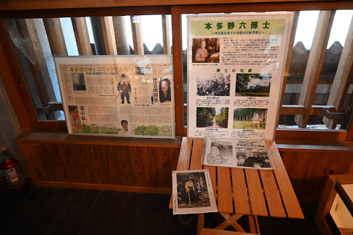山林は後年埼玉県に寄附され、現在ではアウトドアスポット「彩の国ふれあいの森」として整備されている。この科学館は学習と体験の中心であり、入口では寄附者である本多静六の銅像が出迎えてくれる。 中に入ると高い吹き抜けの開放的な構造。柱には全て県内産の樹齢85年を数える杉材が使われているそうだ。展示スペースでは、奥秩父の動植物相の解説、ゆかりの人物である平賀源内、本多静六の事績の紹介、木材の多様な使途や森林の役割などを学ぶことができる。