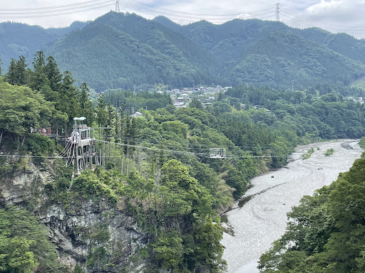I challenged the canyon swing in August 2019. I originally made a reservation, but I had arrived early and that time happened Because it was vacant, I was able to use it. Canyon swing 11,000 yen GoPro + selfie stick rental + 16Gb SD card (SD card fee included) 3,000 yen Check the prohibited items and fill out the consent form first. I remember that it wasn't content. It seems that different harnesses are used for the canyon swing and other uses. Safety equipment such as harnesses are strictly double checked and triple checked, It is an impression that accidents are unlikely to happen unless it is intentional. It is allowed to enter the swing equipment for the first time when the harness is attached, A safety belt is essential here. Before flying, the staff will check if the harness and wearable camera are working. Because it is said that the vertical fall is 47 meters, jump off the building on the 10th floor In addition, a swing in the air (You can experience the opening of the old anime "Alpine girl Heidi") And pulls up when the swing is weakened. I came across the bridge from the station at Mimineguchi, but I was a little glad to see the gallery squeezing my hand from the top of the Arakawa bridge for some reason.