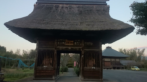 駐車場の奥に茅葺きの山門(仁王門)が建っています。中の仁王像はかわいい表情です。 境内に入ると正面に本堂、右手に童子堂(観音堂)があります。