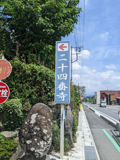 秩父市街地から荒川を渡り、対岸の県道を南に行くと札所24番があります。 県道の反対側に駐車場があり、県道を渡ると、すぐに石段あり、その上が境内となっています。 この石段は、結構上るのがきついです。幅も狭く、濡れていると滑りやすいので注意が必要です。 また、石段の手前には、24番茶屋というお店があり、うどん、そば、豚丼、カレーライスなどが食べられます。 私が行った時は、残念ながら、営業時間外でした。