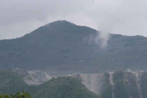 その神宿る山が、なんでこうなったかと言うと秩父市から見たら南側、武甲山の北側半分は不純物の少ない良質な石灰岩で出来ていたからです。セメントの主な需要先である首都圏に近く輸送コストも節約できるので、大正時代から開発が始まります。 それでも神霊が鎮座し、人々の信仰の対象であった山頂部を破壊するのは「畏れ」があったのか、開発は周辺から進み手がつけられていなかったのですが、ついに1980年代に爆破され同時に標高も30m以上も下がってしまいました。