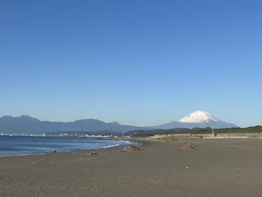 砂浜は見た目以上に広くて(奥行き約100m×幅200m)、ちゃんと歩くと足の裏が心地よく沈む感じがクセになります。遠くに「えぼし岩」がぽつんと浮かんでいて、東には江ノ島、西には富士山が霞むように望めたのは本当に絵みたいで感動しました。他者の意見としては「景色がすごくいい」とよく聞きますが、私も同感です。 砂浜にはその象徴の“あのCマーク”のモニュメントもあって、切れ目から覗く海がキラキラして、写真に収めずにはいられなかったです(縁結びスポットって言われるの、ちょっとロマンチックですよね)