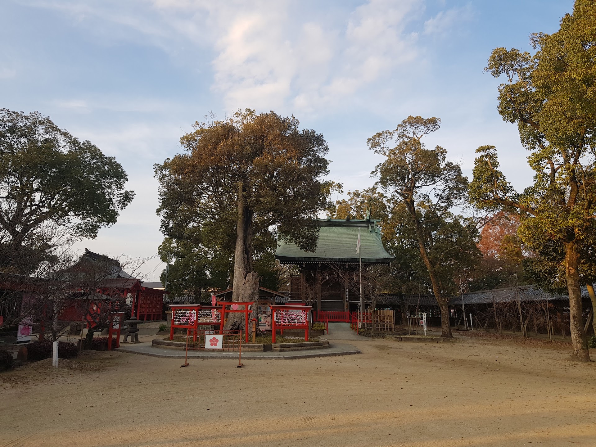 場所などを詳しく説明すると、 恋木神社は水田天満宮の中にある、北に50歩くらい行った所に併設されている神社です。 水田天満は幼稚園を併設していて、地域に密着した雰囲気ののどかな神社です。 ここ最近は恋木神社に力を入れたことと、「鬼滅の刃」の作者の実家からもほど近い「筑後の竈門神社」を「管理している神社」と言う、例えるなら「従兄弟の親戚の友達の同級生が有名人」的なアゲアゲな風が吹いた感じで売り上げ倍増! 石像たちもしめ縄をかけ替えてもらえたりと、裏にいらっしゃる文字の神様以外はすこしリッチになったかもしれないです。 (...
