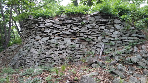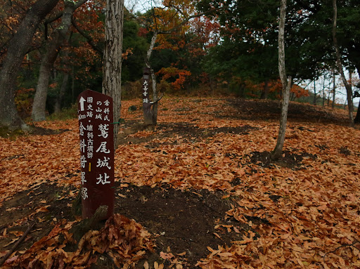 Read more鷲尾城跡 千曲市倉科にある標高520m(比高160m)ほどの山に築かれています。 登山口(写真⑩)から急勾配の道を徒歩約15分で登ると主郭に到着。 写真①のような信濃特有の石垣が周囲を囲んでおり見応えがあります。 主郭から北東の尾根には二重堀切(写真⑤⑥⑦⑧)が連続しており倉科将軍塚古墳(写真⑨)へと続きます。 この古墳跡は曲輪と見られ、背後にも大きな堀切があります。 【歴史】 城主は村上氏の一族倉科氏とされます。武田信玄の信濃侵攻によって村上義清が越後へ逃れた頃に、倉科氏が安曇野方面へ逃れたようです。 【アクセス】 南麓に登山口があります。 近くの倉科の里広場の駐車場が利用できます。