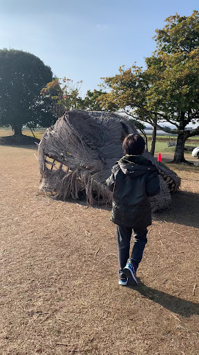Read moreコロナ禍で、わら?で作ったオブジェは、ありませんでした。土台だけは、ありました笑 広々した公園で近所の子どもたちが、自転車で 遊びに来ていて、その自転車のカゴにボールが入っていて、今どきの子はゲームばかりなのに、こうやって、外にボールひとつで遊べる子ども達がいることにほわ〜っとした気持ちになりました。まだまだ捨てたもんじゃないですね。 家族連れで散歩や、ワンちゃん連れの方も多く、すれ違うたびに、こんにちは!の声に、ほんとに癒されました。斜めに差し込むオレンジ色の夕陽越しに、子どもの頃の懐かしい風景を思い出させる公園です。何も考えたくない時に、のんびり1日シートでもひいて...