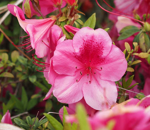 The Observatory is a view tower, and weather permitting, you will enjoy a 360-degree view of nearly the entire island and beyond. It appears to be open 24 hours as there's no gate; no admission fee. From the base of the tower a concrete path leads down through a neglected garden of exotic flora where a few rhododendron shrubs bloomed their hearts out in hues of red and violet during my April visit. Hibiscus plants also displayed their blossoms. At a small pond the trail enters a dark dense forest and continues mostly downhill a few hundred meters to a road, across from a camping area (Photo is the trailhead sign at the road). The Observatory is well signed, but ignore Google maps routing on the path south of the Observatory. Instead, take the nearly level gravel and concrete road on the north; it is just a few hundred meters long and easily driven. The Observatory is about 3 kilometers from Shoryudo Limestone Caves, and the two are easily visited together. I visited both traveling from Wadomari on a bicycle, making much use of the...
