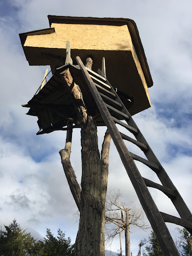 茅野市宮川高部にある茶室。藤森照信氏の設計で2004年完成。木の柱の上に載せられたツリーハウスのような茶室で、塗り後を残した土壁に屋根は焼板と工業製品ではなく、個人の手の後を残した藤森氏らしい建築となっています。 もともとは、藤森氏の実家の畑内に建てられたごく私的な建物だったのだと思いますが、周囲からも抜き出てみえる独特の見た目から、この地域を象徴する建物になっています。特に東側の鎌倉道や南側の高台からみると、ごく自然にまわりの風景に溶け込んで、素晴らしい眺めとなっています。 この茅野市高部は、藤森氏が高校までを過ごした地元で、神長官守矢史料館(1991)に始まり、高過庵(2004)、玄庵(2006)※増築、空飛ぶ泥舟(2010)、低過庵(2017)、高部公民館(2021)、五庵(2022)と、7軒の藤森建築が密集...