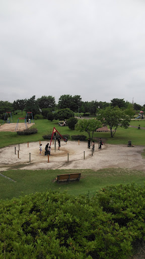 Read moreこの公園には長い滑り台があり、大人が滑っても楽しめます。 下に小さな物置があり、その中にマットが入っているので、それをもって滑ってください。 でないと、おしりが痛くなり、途中から痛くて滑ってこれなくなるので、注意してください。 他にも魅力的な遊具があり、全部で10個ぐらいあります。 そのなかでも、タイヤに乗ってグルグル回るやつがあります。 これは、他の公園ではみたことがありません。 物珍しくて大人も楽しめちゃいます。 真ん中に屋根付きの休めるところもあります。 駐車場に停めて、ゆるやかな坂を登っていき、橋を渡るとこの公園があるのですが、この行くまでの道程も大人も子供もワクワクするような造りとなっています。 この公園も広いのですが、駐車場を停めた前の芝生も広くて走り回って遊べるし、こちらの奥にも少し遊具があります。 なので、こちらでも楽しんでから、奥の公園に行っても良し、奥の公園を遊んでから、帰りにまた少し遊ぶのも良し、2度遊...