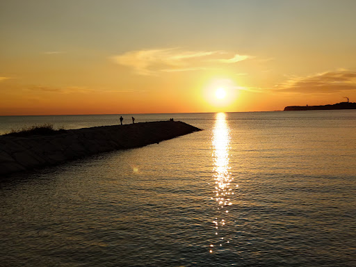 Good for cooling in ocean waves. There are plenty parking lots, extended green fields, open showers, even a few dressing boxes on the beach. Kids played with a rental toys, and others enjoyed coold drinks and snacks in a tent cafe. It was pleasant to take a walk along the coast before the sunset. Nice view of Mt...