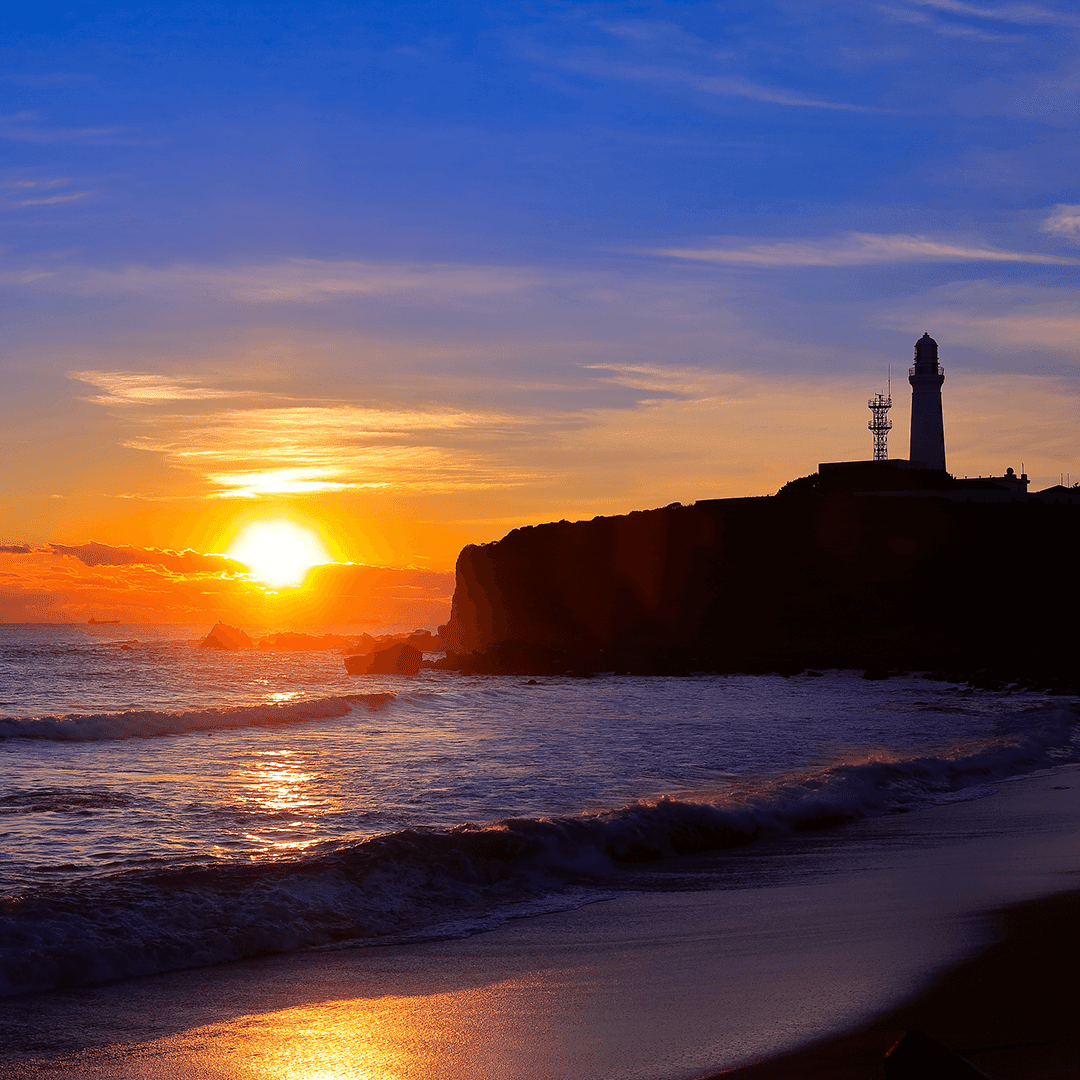 ・日本の1年はここから 関東は千葉県銚子半島の最東端。ここは日本一早い日の出スポットとして有名な犬吠埼。1月1日元日の06:46に行けば素晴らしいスタートが切れることでしょう。