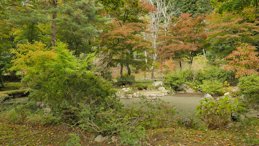 こちらは建物は取り壊されて、残るは庭園のみ。かつては建物だった場所は空き地で、庭だけ残った一乗谷のような寂しさがある。