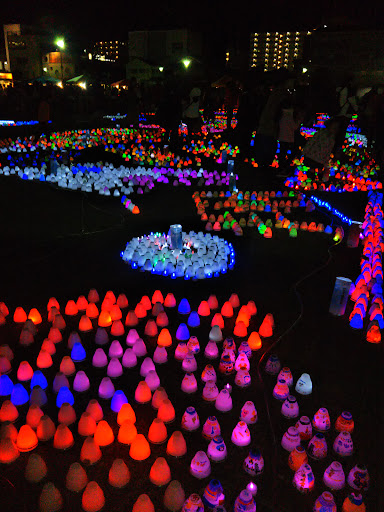 The open area is pretty big and suitable for playing some kind of catch ball or frisbee but it's tiled pavement and not grass. The park serves as a drain as well by design, so after any heavy rainfall that area is basically flooded. Open public events are held throughout the year during the warmer months featuring bon odori and a city people's festival that's just stand foods and performances by local groups.