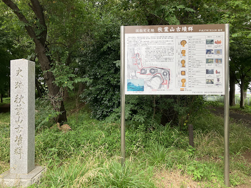 この場所には「案内掲示板」と大理石の「史跡秋葉山古墳群」の石碑が 建立されています。 裏書 : 平成17年7月14日指定...